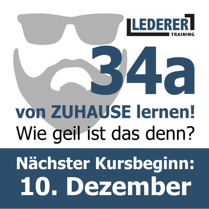 Dieser Kurs ist ausschließlich für Prüfungs-Wiederholer oder "Schnell-Lerner" (m/w/d) geeignet! Voraussetzung sind